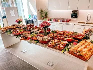 Multi dimensional graze tables are usually the only catering at an event and include a charcuterie graze table AND lots of canapés as add ons such as: